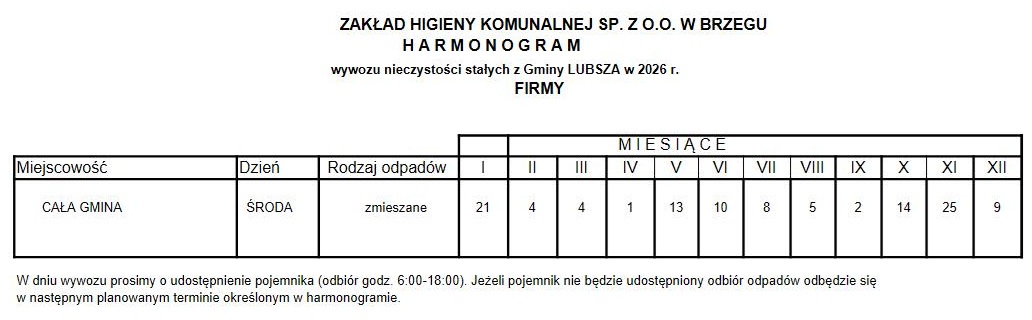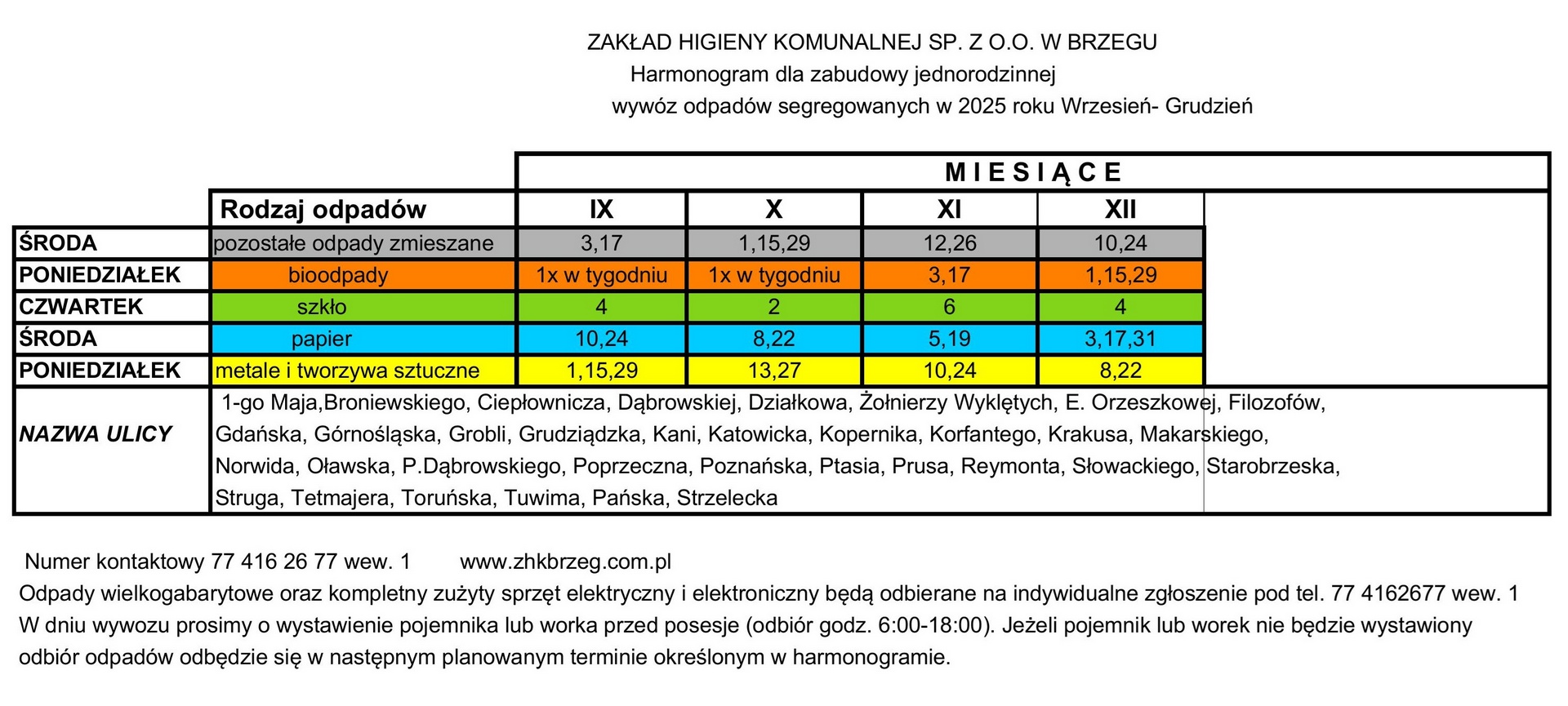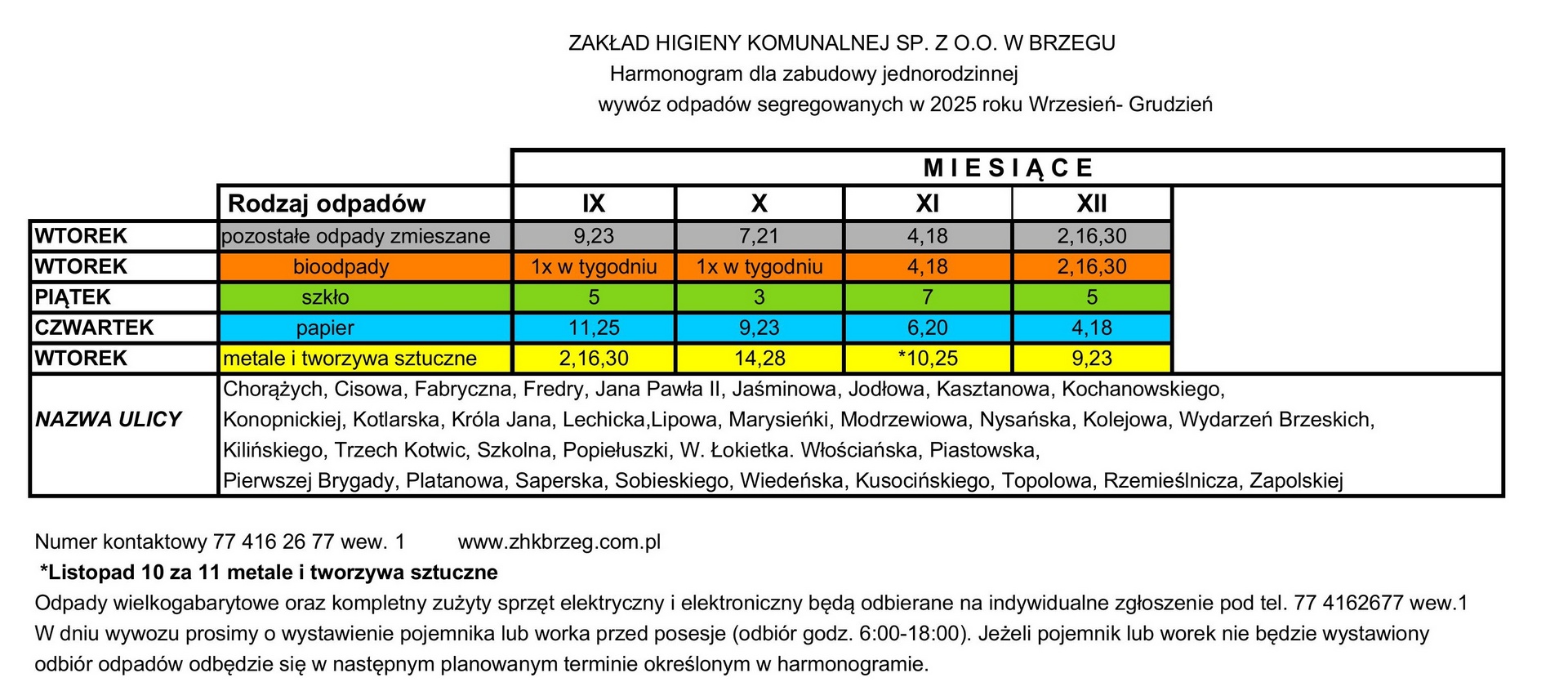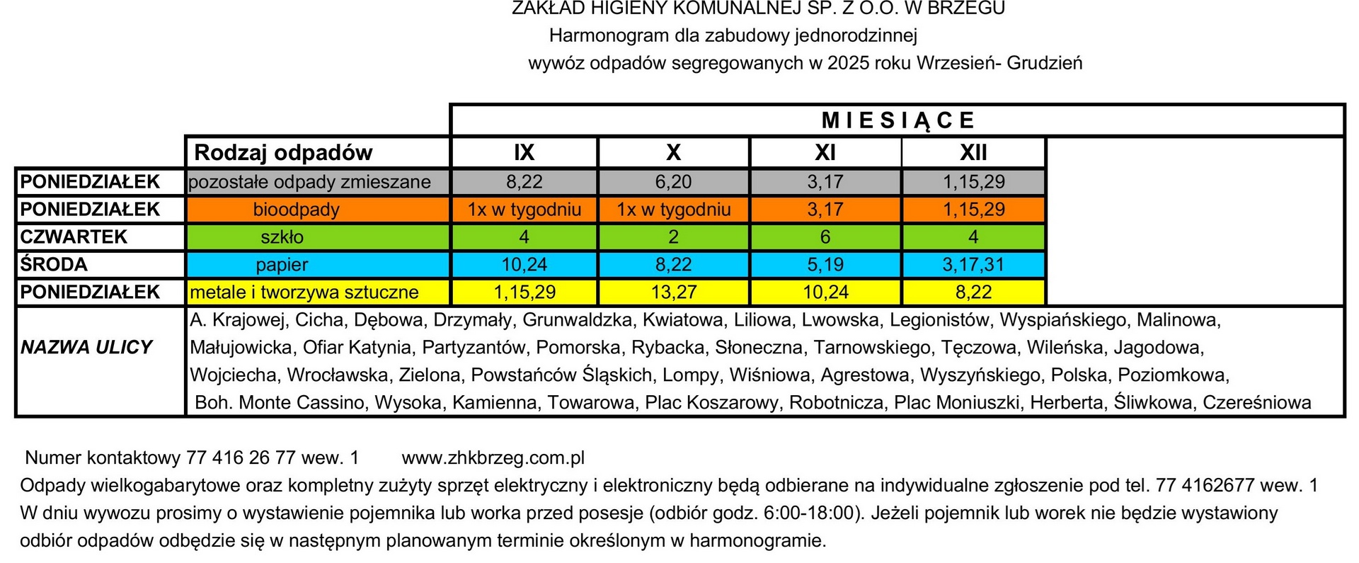 PRZYJMOWANE SĄ WYŁACZNIE POSEGREGOWANE ODPADY W DNIACH